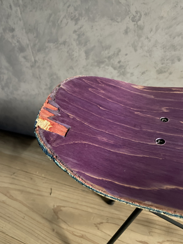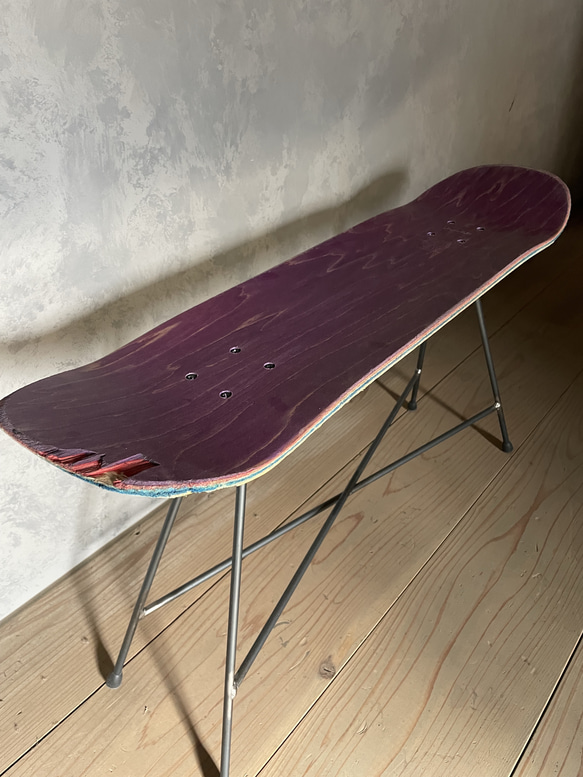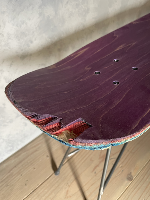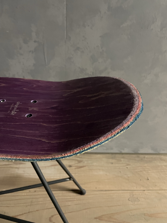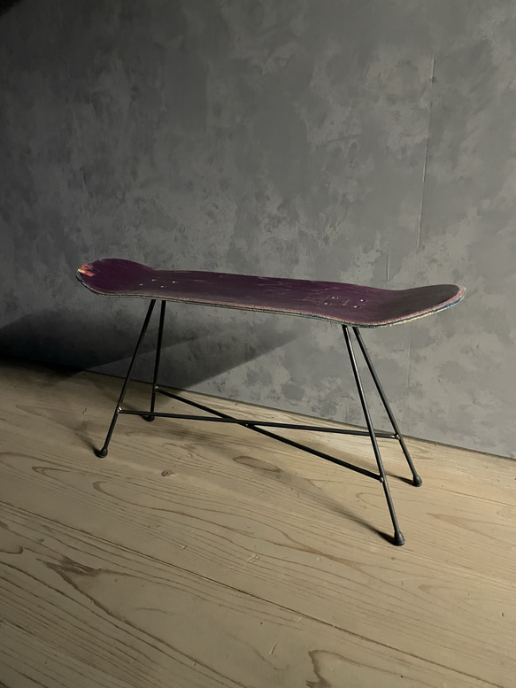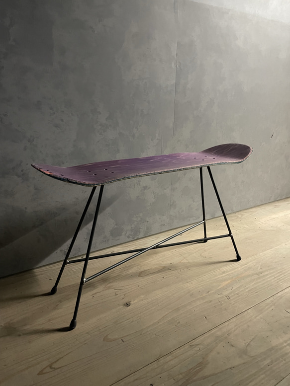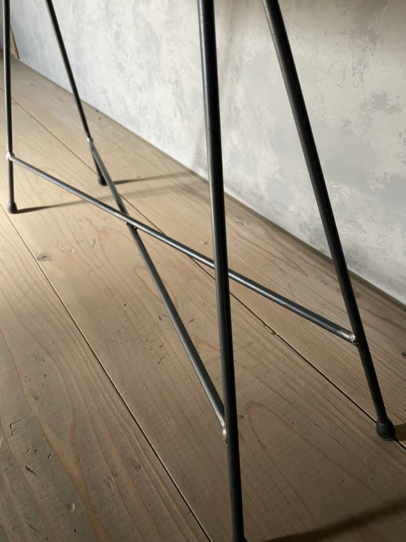 使い込んだデッキとアイアンフレームのスツール。ディスプレイ台・植物台としてもおすすめです。